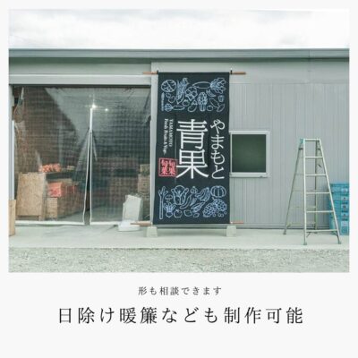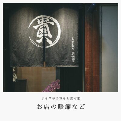 半のれん、長のれん、水引のれん、日よけのれんなどの基本的な暖簾の形から、お客様ご要望のオリジナルの形まで作成いたします。